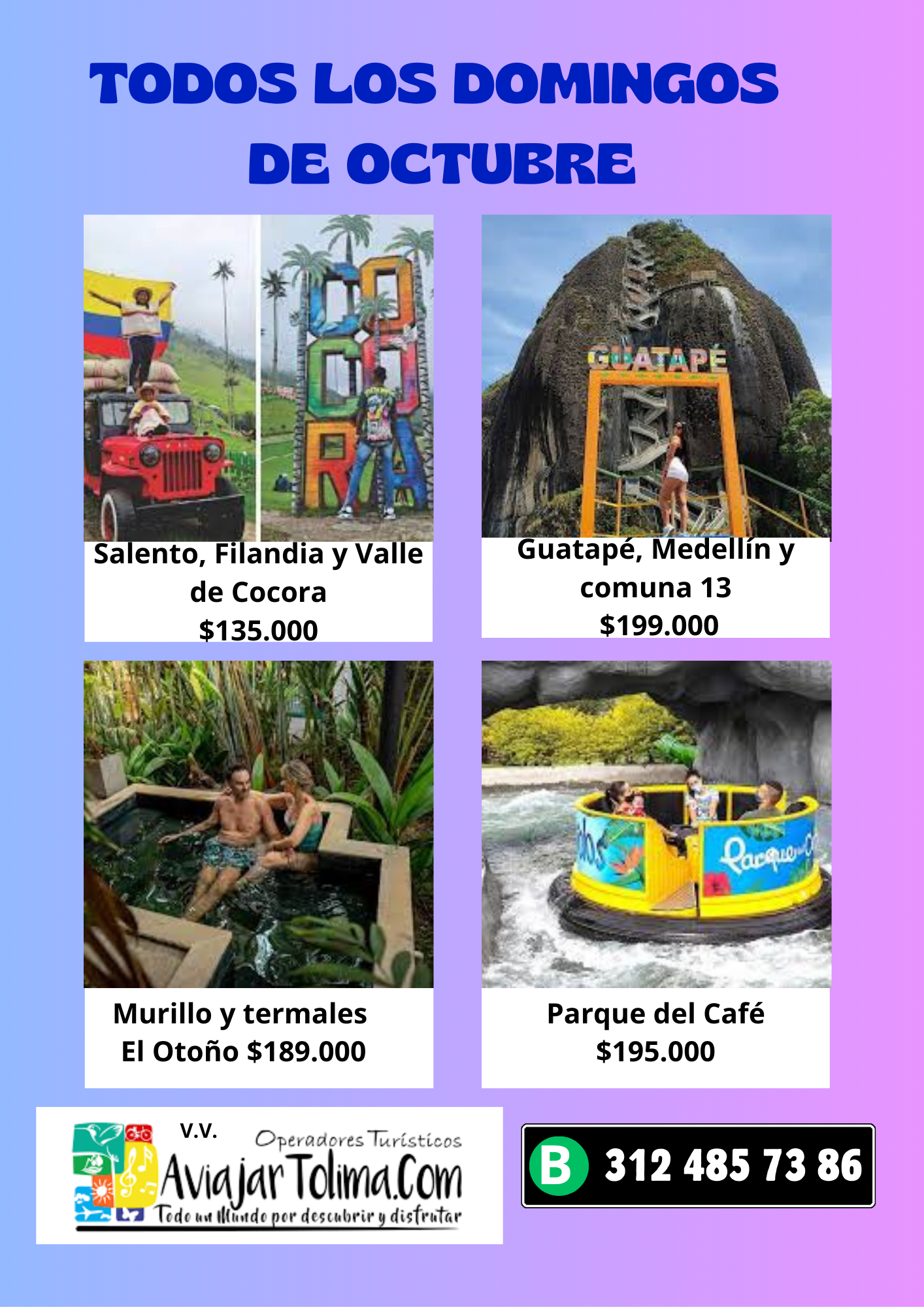 Nuestros destinos nacionales están esperando por ti, descubre los increíbles paisajes de Colombia visitando la magia en cada rincón del país, con actividades y gastronomía local en cada uno de nuestros tours vivirás una experiencia mágica.