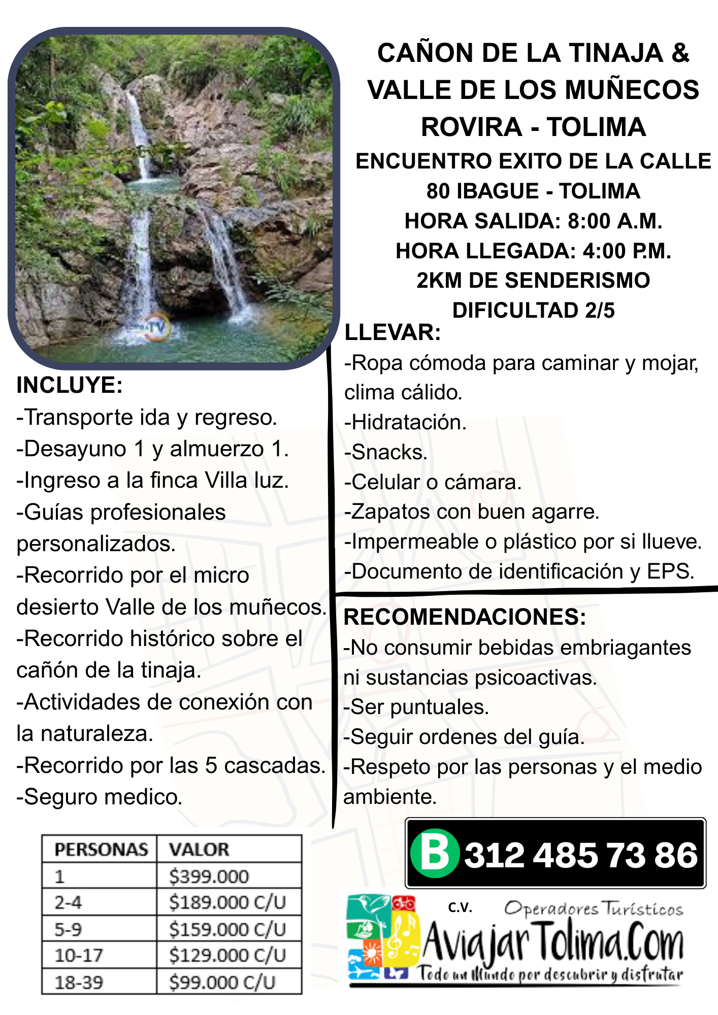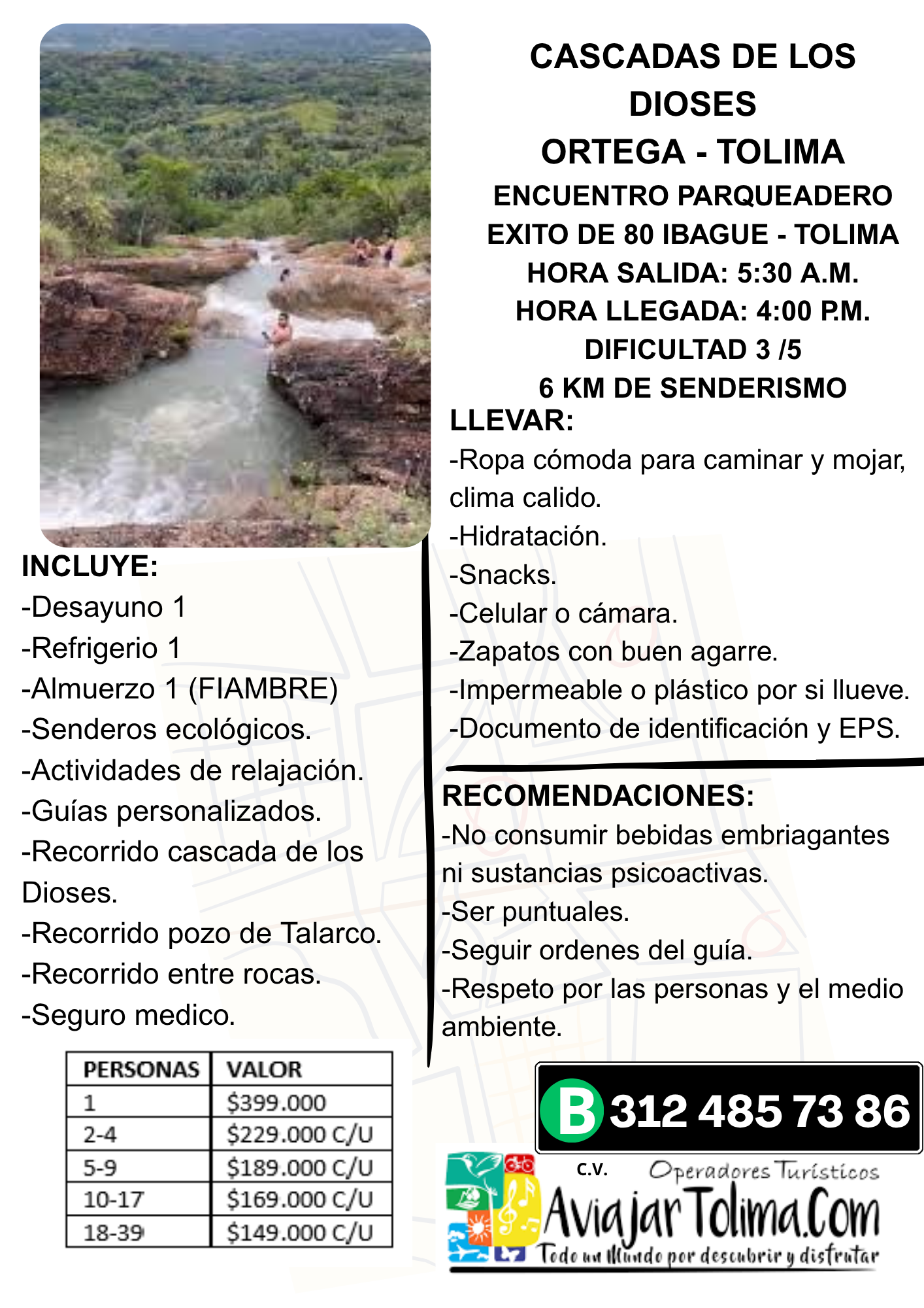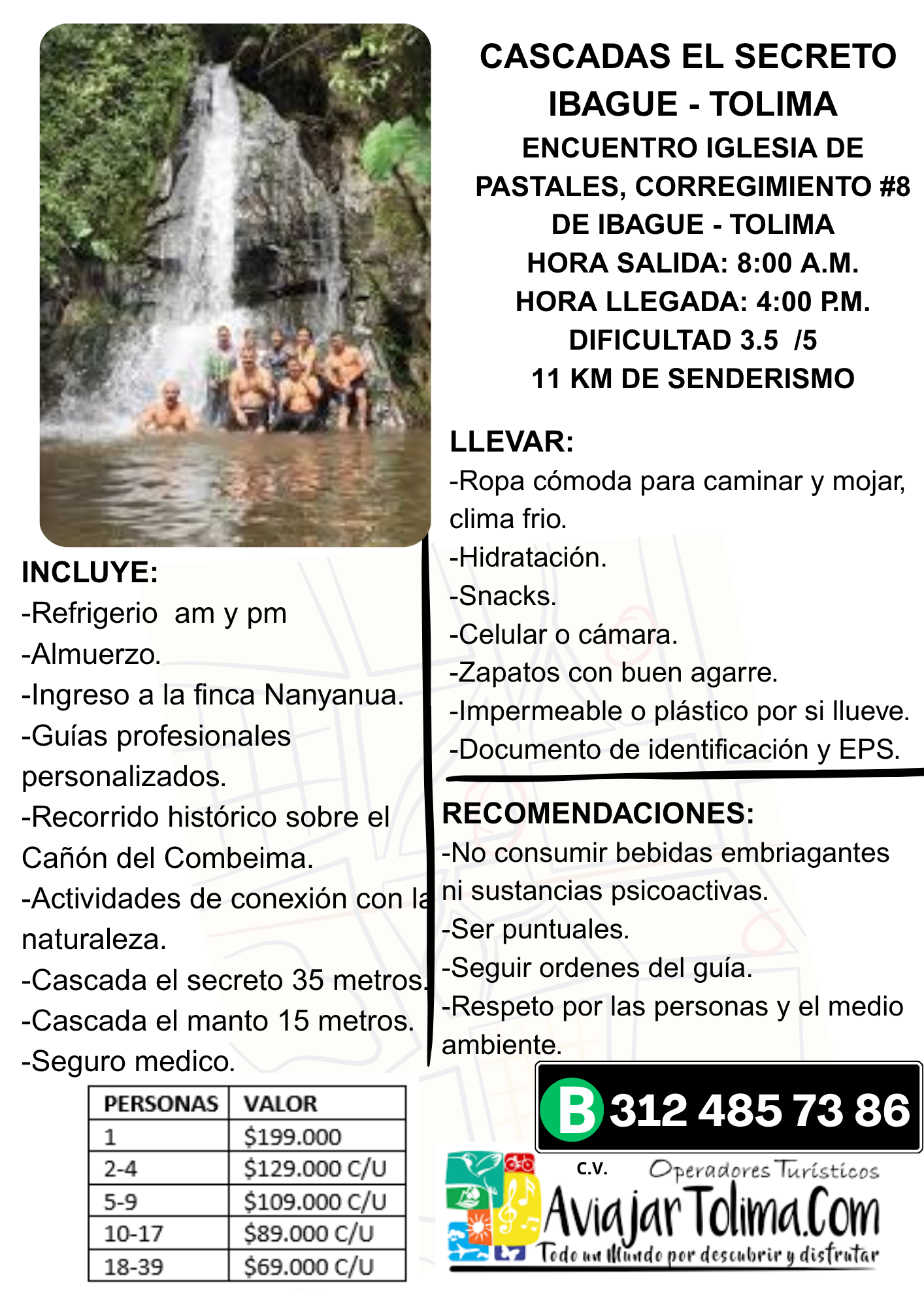 Visita este increíble destino en compañía de A Viajar Tolima, nuestro plan incluye transporte, visita a la Casacada La Cristalina, y más