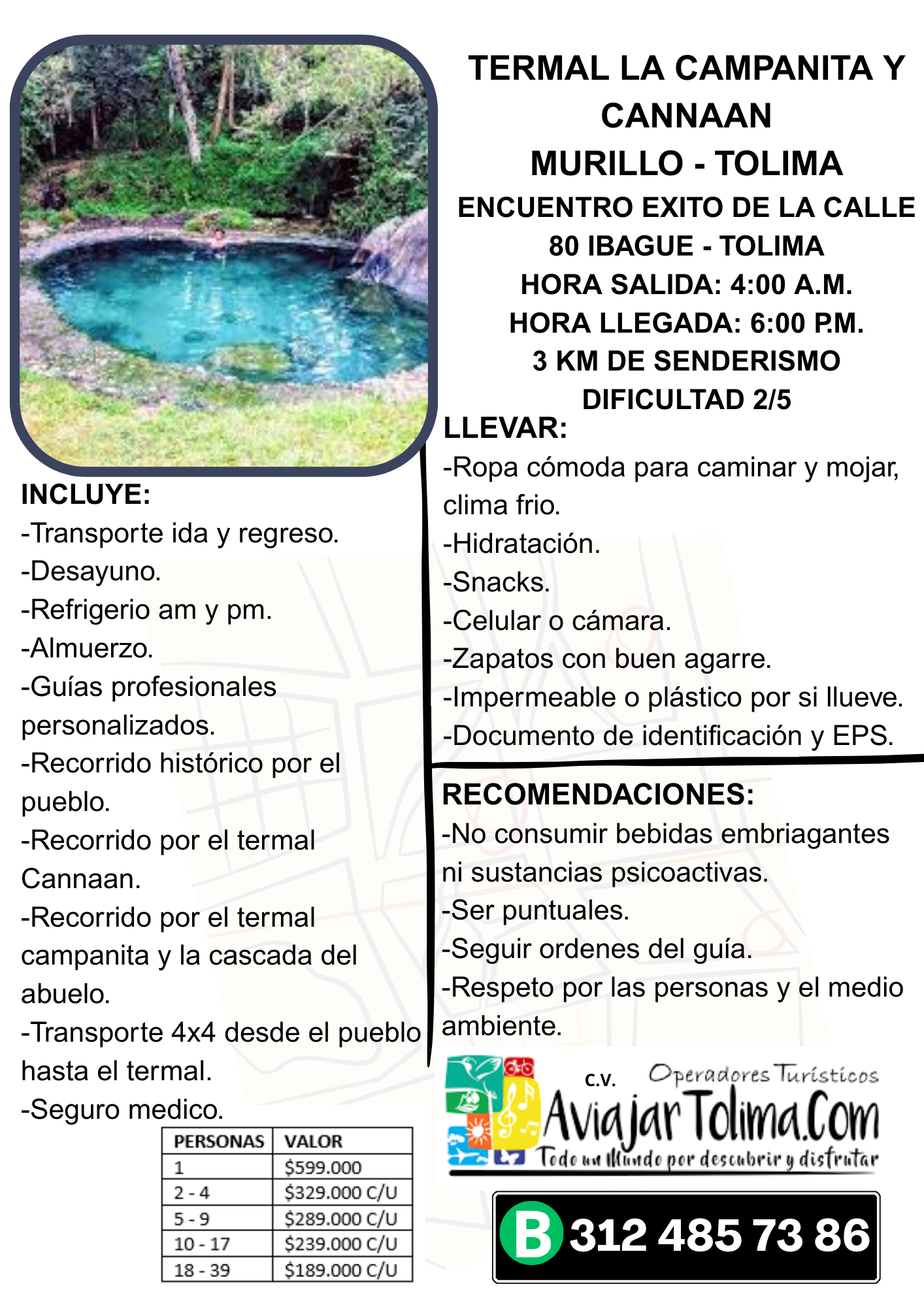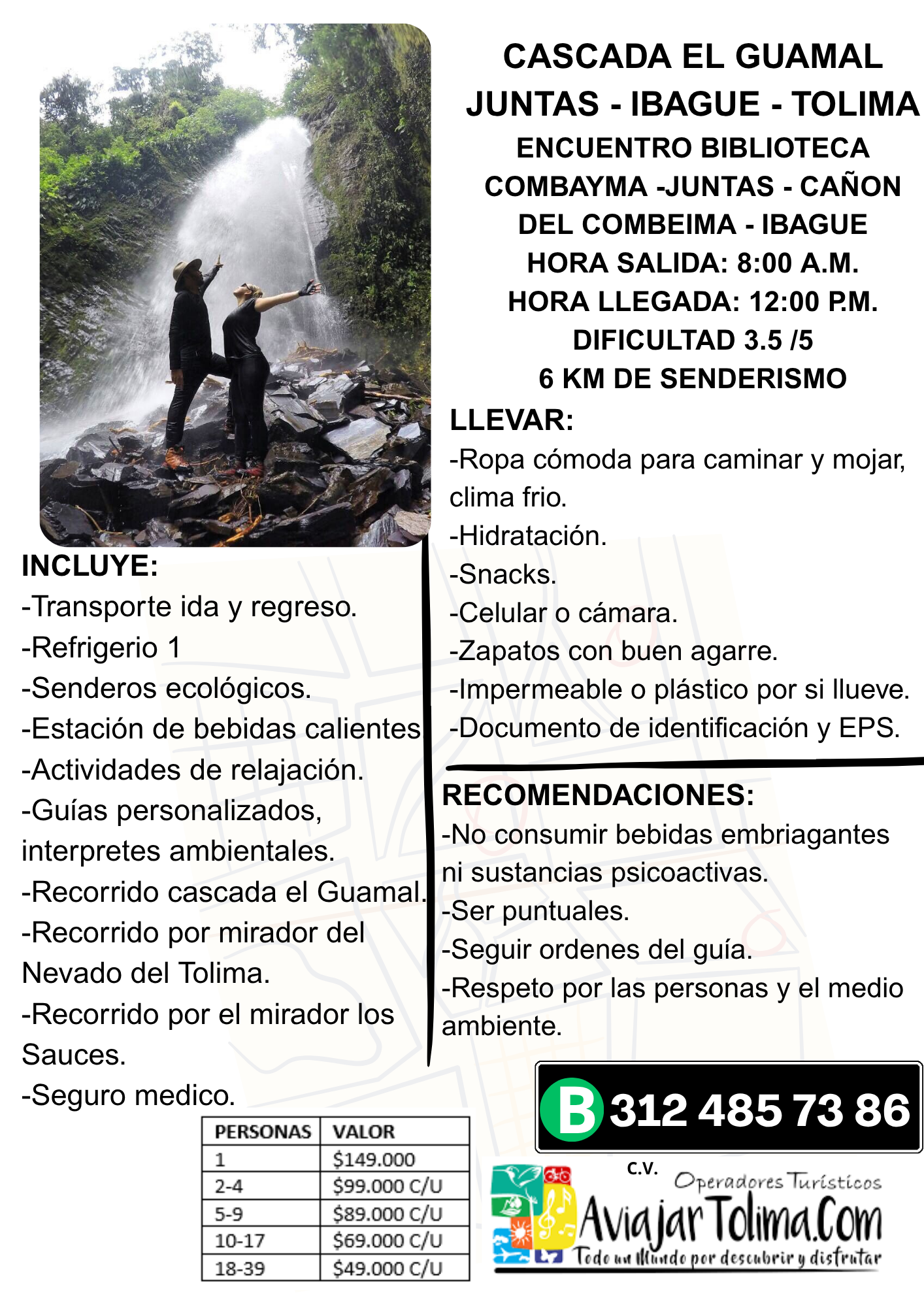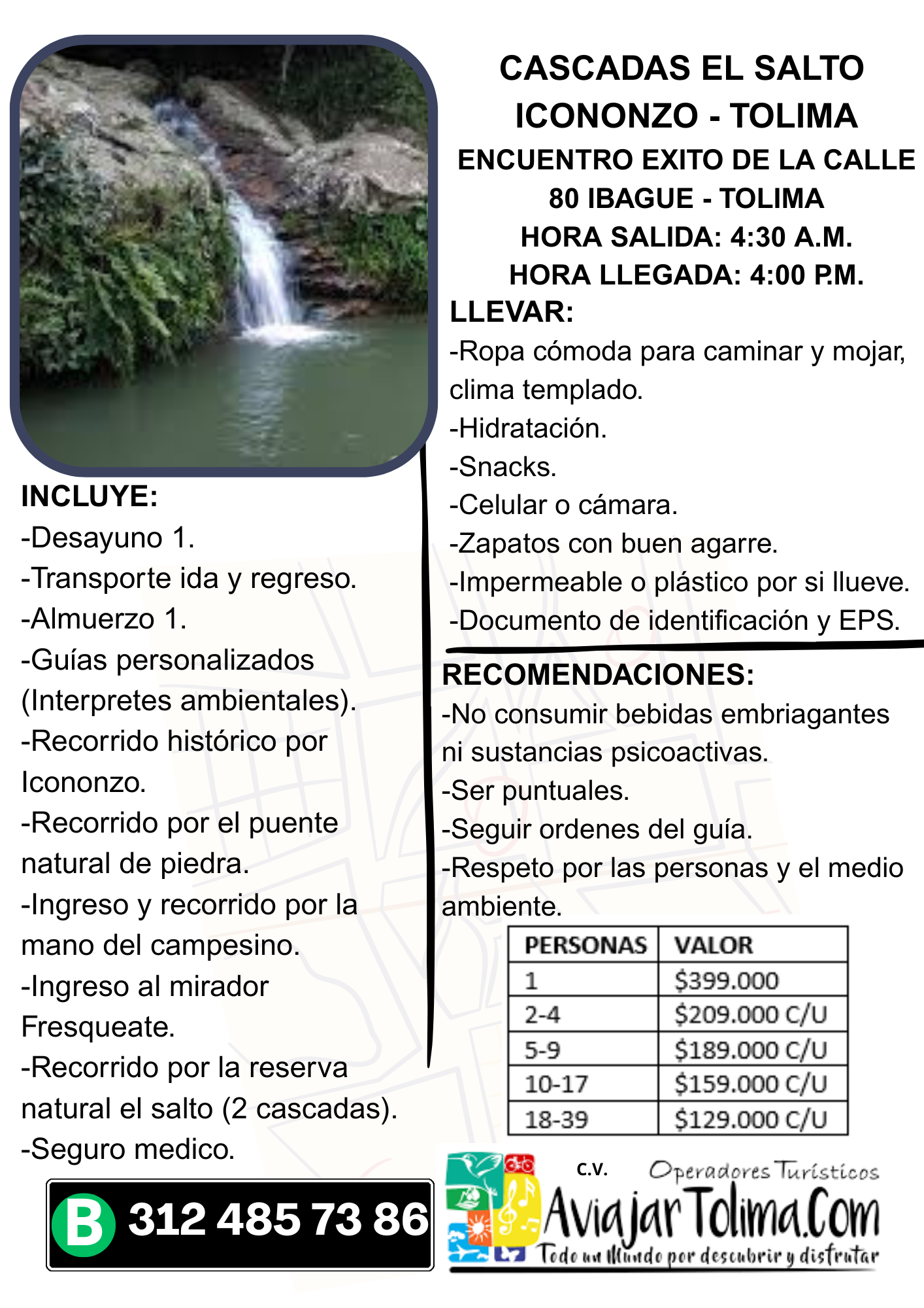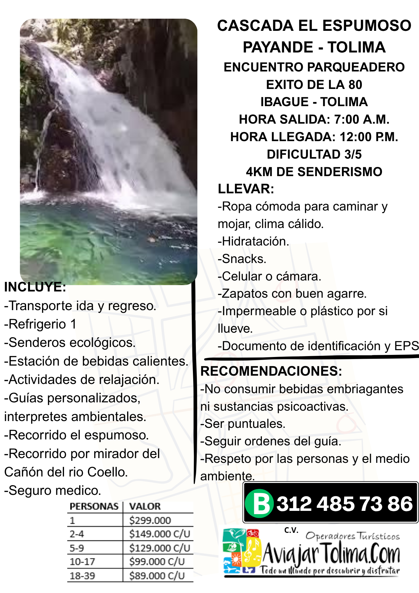 Visita este increíble destino en compañía de A Viajar Tolima, nuestro plan incluye transporte, visita a la Casacada La Cristalina, y más